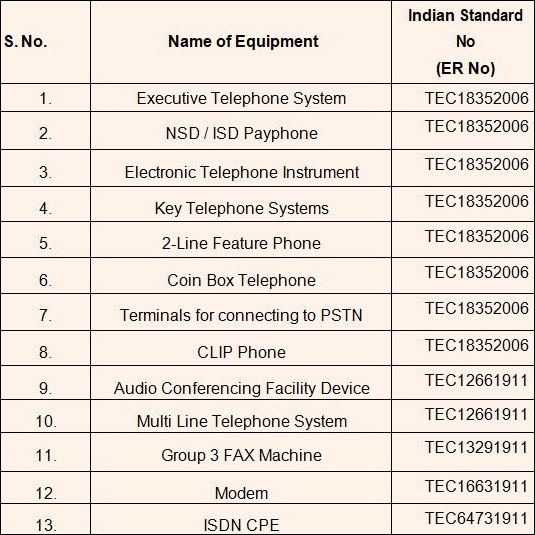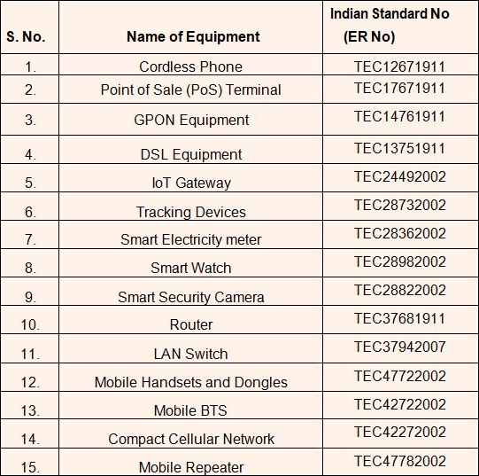 The IR emitted by TEC ensures that telecommunication devices comply with the EMI / EMC (Electromagnetic Interference / Electromagnetic Compatibility) safety standards set by TEC and interact properly with the other products / networks of the Indian Telecommunication Network.